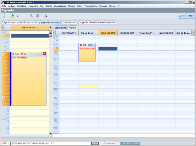 Con Unico base è possibile gestire una agenda per ciascun dipendente o collaboratore.